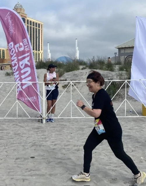 Look at that smile as Joann Rivera is coming to the finish line at her first Bungalow Beach 5 Miler in Atlantic City, NJ on June 3rd, 2023. Joann joined our community in August of 2o22, at 64 years old. Dropped 12 pounds her first month of working with Coach Tadris. Ran her first 5k with RTTBY in October 2022. At 65, Joann knocked out an 8k with us in April of 2023, and now a 5 miler!